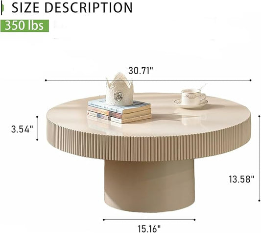 Handmade Wooden Drum Coffee Table、Elegant Round Fluted Wood Coffee Tables、Rustic Modern Circular Centerpiece for Living Room & Farmhouse Decor (A White 30.7in)