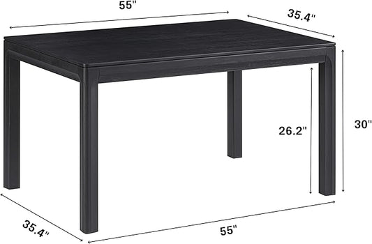 NTC Flow 55 Inch Modern Design, Rectangular Dinner Table for Dining Room, Living Room Furniture, Effortless Assembly, Burnt Black