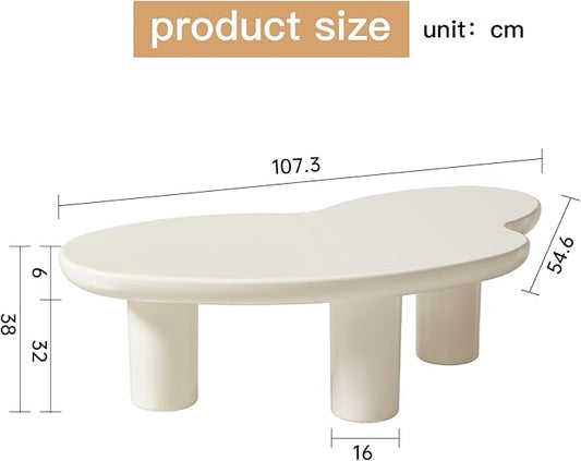 Cloud Coffee Table, 42.24" Irregular Cream White Coffee Table with 3 Legs, Modern Center Table for Living Room, Indoor Tea Table, Easy Assembly