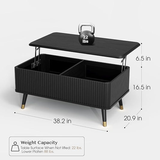 Lift Top Coffee Table, Mid Century Modern Coffee Table with Hidden Compartment, Fluted Lift Tabletop Center Table for Living Room, Home Office, Black