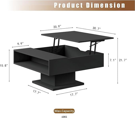 30.7" Lift Top Coffee Table with Storage, Square Black Led Coffee Table with Large Hidden Storage, Wood Living Room Table Led Center Table for Dining Reception Room