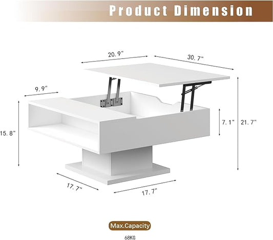 31.5" Lift Top Coffee Table with Storage, Led Square White Coffee Table with Large Hidden Storage, Wood Living Room Table Center Table for Living Room Dining Reception Room