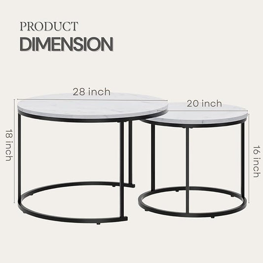 Round Coffee Table, Circle Nesting Coffee Tables for Living Room, Small Dining Center Space Saving Living Room Small Tables, Modern Center Table Dining,Modern Home Furniture White