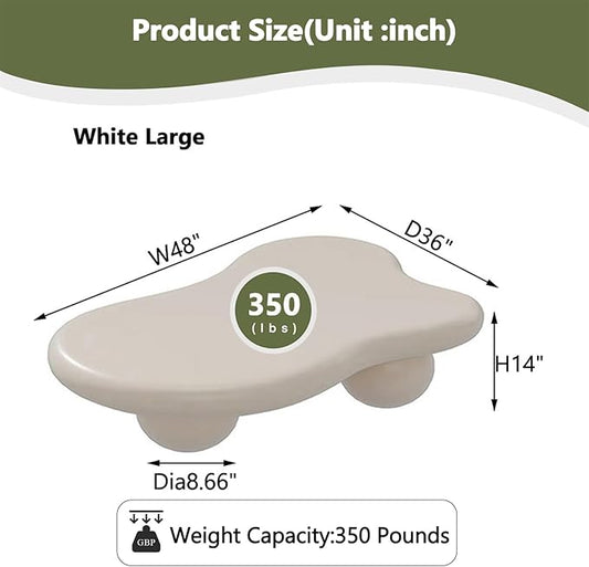 Cloud Coffee Table for Living Room with Round Corners Modern Style Center Table with 3 Ball-Shaped Legs Wood Tea Table for Small Space Apartment Easy Assembly (White W48 * D36 * H14inch)