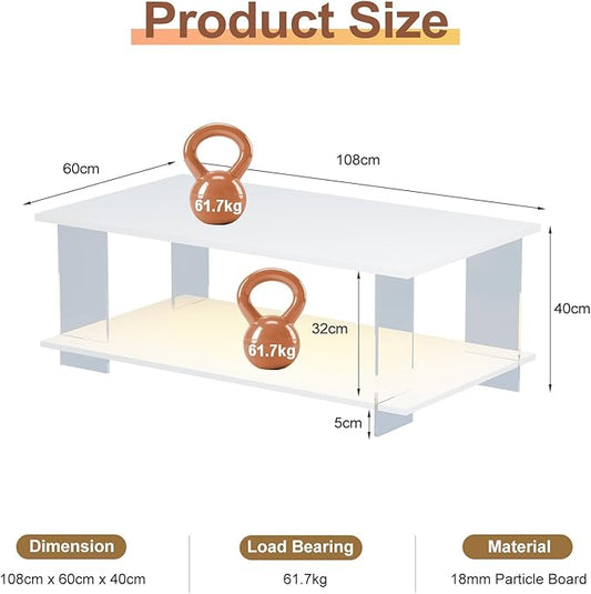 43" Acrylic Coffee Table with Wood Top, Minimalist Stylish Modern Rectangular Center Tables for Living Room, Led Living Room Table with Storage Shelf & Acrylic Frame for Small Space