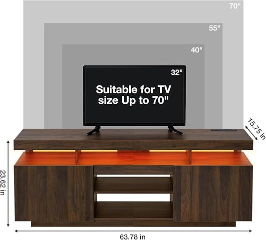 HOMMPA LED Lift Top Coffee Table and TV Stand Set of 2,Modern LED Entertainment Center with Power Outlets for up to 70" TV, Coffee Table with Hidden Compartment & 2 Open Shelve Walnut