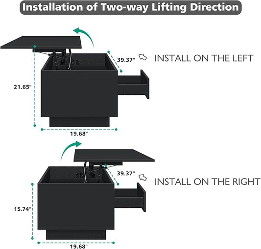 40" Lift Top Coffee Table,4 in 1 Multi-Function Lift Coffee Tables with Storage Drawers and Hidden Compartmen,Farmhouse Coffee Table with Lifting top for Living Room,Black