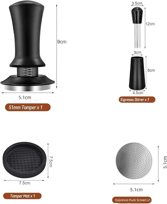 Gmnuiy51mm Coffee Espresso Tamper ,with Stainless Steel Base Tamper ,Silicone Tamper Mat,Black Espresso Distribution Tool, Coffee puck screen