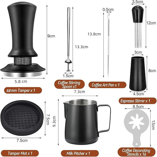 22 PCS Espresso Accessories Kit,58mm Coffee Tamper Set ,Barista Kit, - with Frothing Pitcher,WDT Tool,Stirrer,Tamper Mat ,Coffee Stencils,Latte Art Pen