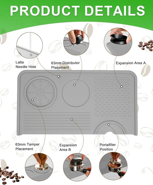 Upgraded Silicone Tamping Mat & Brush, Tamper Mat for Espresso Machine, Waterproof Heat Resistant Tamp Station for Home Baristas Tools, Gray