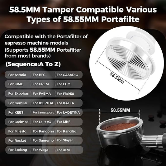 IKAPE 58.5mm Espresso Tamper, Premium Barista Coffee Tamper with Calibrated Spring Loaded, 100% Stainless Steel Base Tamper Compatible with Espresso Machine Rancilio, Gaggia Bottomless Portafilter