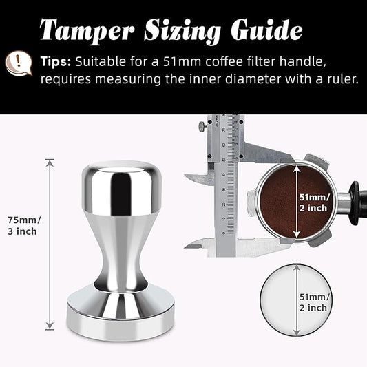 Huogary Stainless steel Coffee Tamper, 51mm Espresso Tamper, 51mm Tamper with Stainless Steel Handle, Coffee Powder Espresso Accessories (Silver) (Silver)