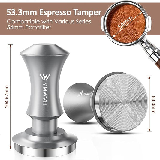 Espresso Tamper 53.3mm, YMWVH Premium Barista Espresso Coffee Tamper Silver with Dual Spring Loaded 100% Stainless Steel Ripple Base, Constant 30lb, Compatible with Breville 54mm Portafilter
