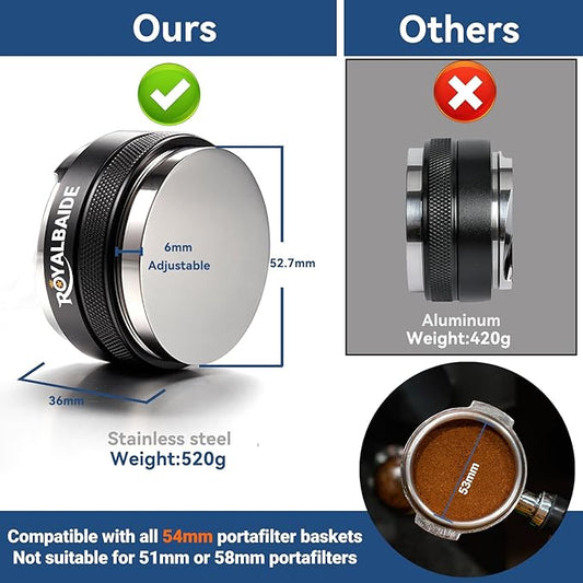X XUNADA 53.3mm Coffee Distributor & Tamper, Works with all 54mm Portafilters, Espresso Hand Tampers, 2-in-1 Adjustable Espresso Distribution Leveler & Tamping Tool