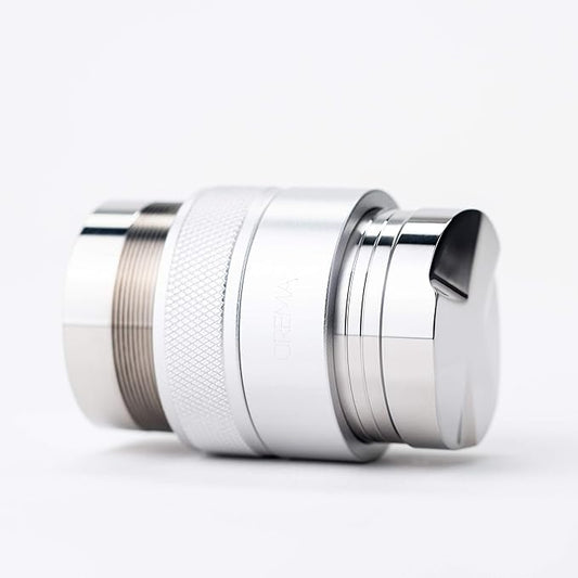 Crema Coffee Products | 45.5mm Coffee Distributor/Leveler & Hand Tamper | Fits Flair Pro and Pro 2 | Double Sided, Adjustable Depth | Beautiful Espresso Hand Tampers (45.5mm) (Silver)