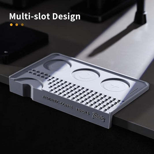 Crema Coffee Tamping Mat for Bambino | Non-Slip Silicone Protection for Countertops & Portafilters | Precision Fit with Drip Tray & Vent Holes | Easy to Clean, Durable Espresso Tamping Pad