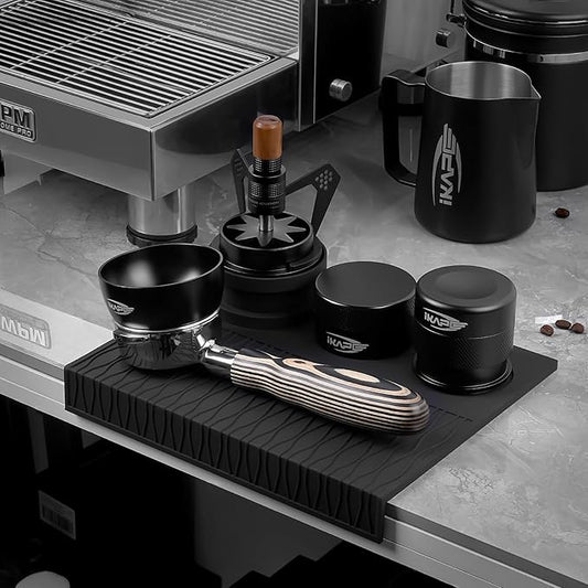 IKAPE Espresso Tamping Mat, Food Grade Silicone Coffee Tamper Mat, Portafilter Tamp Mat Espresso Accessory For Baristas, Waterproof Heat Resistant Tamping Pad Mat for Counter