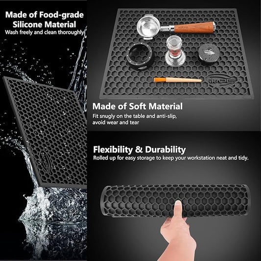 Espresso Tamping Mat for Counter, Ultra Thick Silicone Tamper Mat Coffee Bar Mat,Espresso Mat for Countertops,Fits for Baristas Home Kitchen Bar
