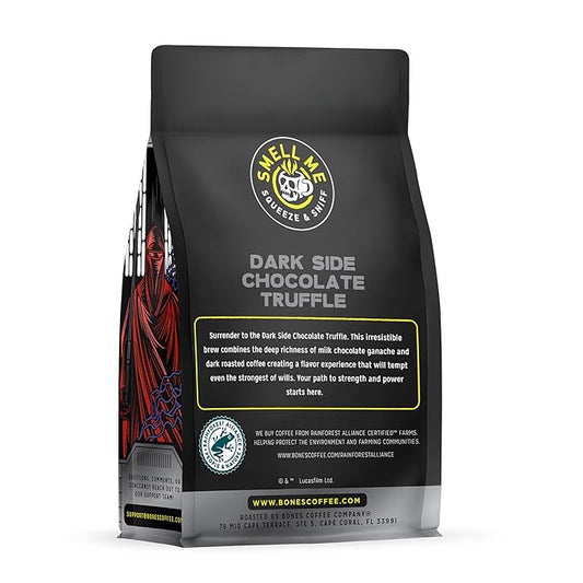 Bones Coffee Company Star Wars Dark Side Chocolate Truffle Flavored Coffee, Medium Roast Low Acid Arabica Beans Compatible with Auto drip and French Press Coffee Maker, 12 Oz Whole Bean