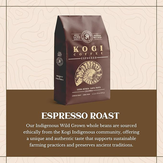 The Younger Brothers Trading Co. Kogi Coffee | Indigenous Wild Grown Whole Bean | Ethically Sourced Single Origin Colombian Coffee | Kogi Espresso Roast | (12oz Bag)
