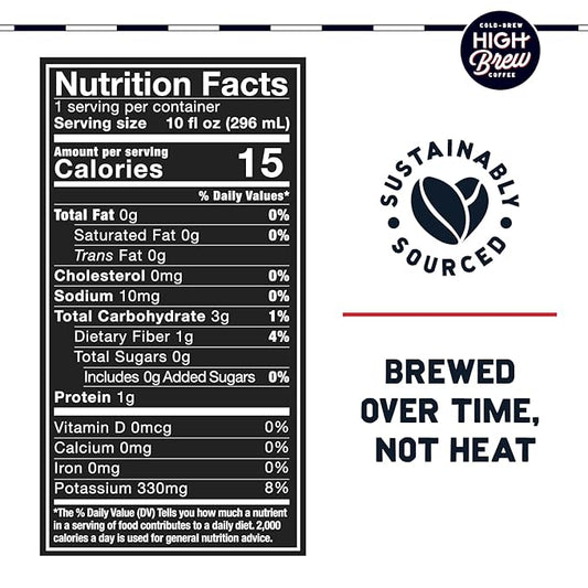 High Brew Coffee, Nitro Black, Cold Brew Coffee, Sugar Free, Dairy Free, 10 Fl Oz, Ready-To-Drink (Pack of 12)