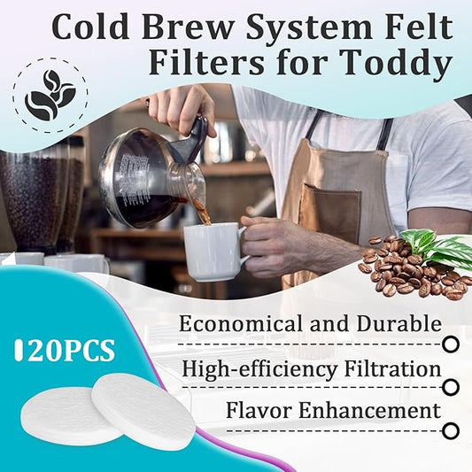 20 Pcs Cold Brew System Felt Filters for Toddy, Reusable Coffee Filters Compatible with Toddy,Fits for Nispira Replacement Water Filter and Alocs Coffee Filter