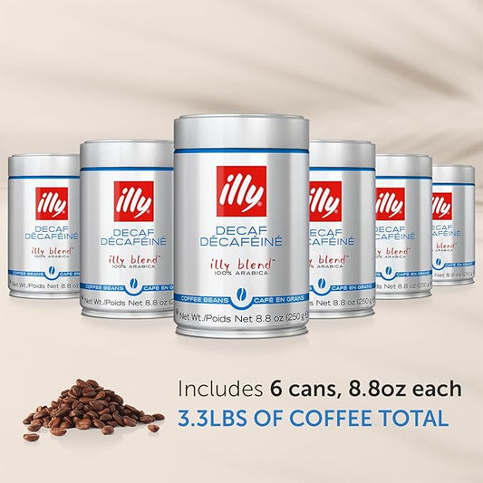 illy Whole Bean Coffee - Perfectly Roasted – Classico Decaf Roast - with Notes of Caramel, Toasted Bread & Chocolate - 100% Arabica Beans - No Preservatives – 8.8 Ounce, 6 Pack