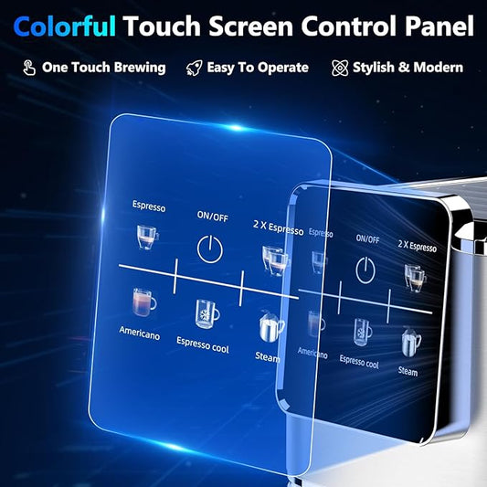 Espresso Machine 20 Bar,Touchscreen Espresso Maker with Steam Milk Frother, Stainless Steel Expresso Coffee Machine for Home with Removable Water Tank for Cappuccino Latte,Cold Brew,Long Coffee