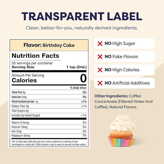 Coffee Concentrate - Limited Release Flavors - Cold Brew Coffee, Perfect for Hot or Iced Instant Coffees, Hot Drinks, Cold Brew Concentrate, 35 Servings - Birthday Cake