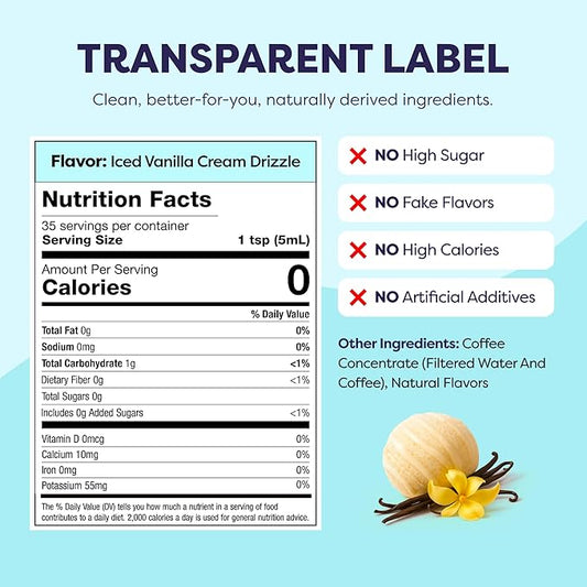 Coffee Concentrate - Limited Release Flavors - Cold Brew Coffee, Perfect for Hot or Iced Instant Coffees, Hot Drinks, Cold Brew Concentrate, 35 Servings - Iced Vanilla Cream Drizzle