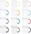 11oz White Ceramic Sublimation Coffee Mug Mixed 12 Colors Rim & Handle, Case of 12