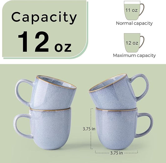 Teocera Ceramic Coffee Mug Set of 4-12 oz Coffee Mugs with Large Handles for Hot or Cold Drinks Like Latte, Cocoa, Tea or Juice - Smooth Ceramic, Dishwasher Safe, Turquoise