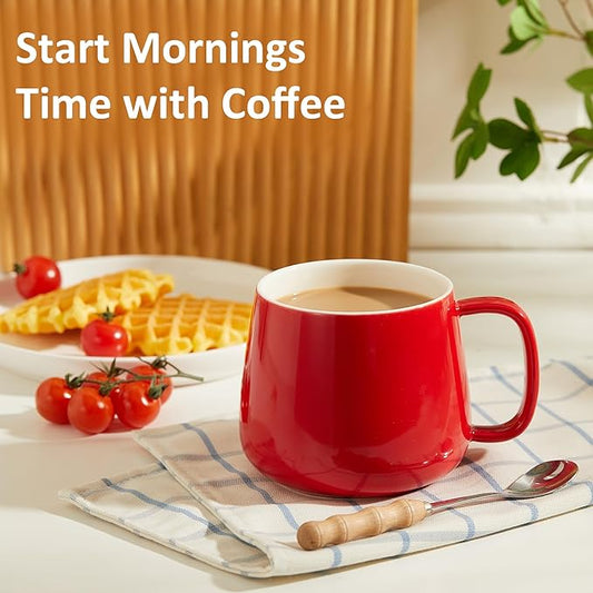 Teocera Ceramic Coffee Mug Set of 4-12 oz Coffee Mugs with Large Handles for Hot or Cold Drinks Like Latte, Cocoa, Tea or Juice - Smooth Ceramic, Dishwasher Safe, Red