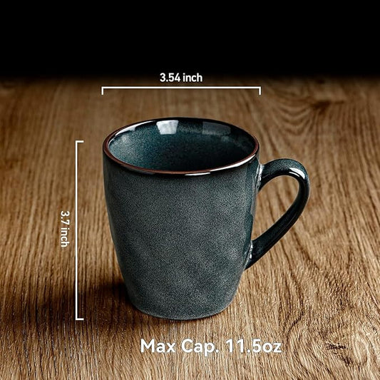 famiware Coffee Mugs Set of 4, Ocean Round 11.5oz Coffee Cup Set with Handle for Cocoa, Milk, Hot Chocolate, Stoneware Cups for Kitchen, Reactive Glaze, Microwave Dishwasher Safe, Deep Forest
