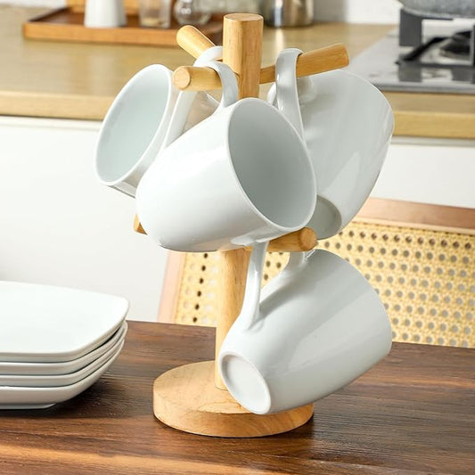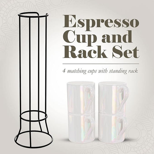 American Atelier Ceramic Mini Espresso Cups Set of 4, 3oz - Stackable Tiny Mugs for Small Shots of Coffee with Metal Stand - Use Demitasse Espresso Mug Racks for Any Kitchen or Café (Pearlized)