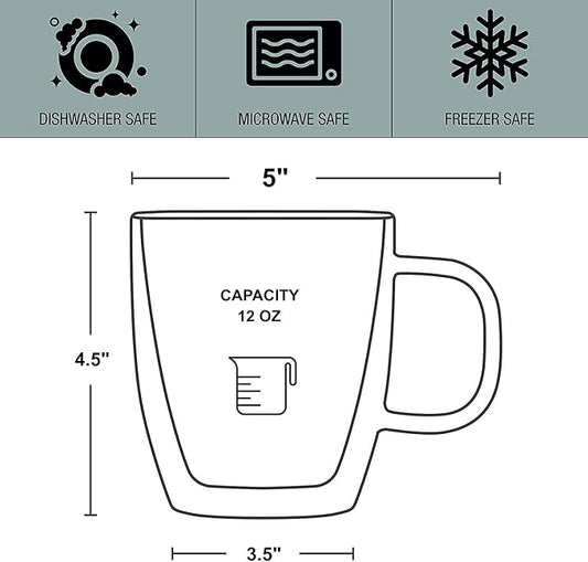 Gmark Large Coffee Mugs Set of 2 (12 oz, 350 ml), Double Wall Tumbler Glass Cup, Insulated Coffee Cups for Tea, Latte, Espresso, Juice, or Water GM2029