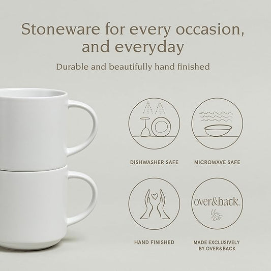 over&back Coffee Mugs Set of 4 – 14oz Ceramic Coffee Mug for Tea, Latte & More – Stackable Stoneware Coffee Cups with Semi-Matte White Finish – Durable & Stylish Drinkware