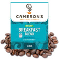 - UNIQUELY HANDCRAFTED COFFEE: One, four pound bag of Cameron’s Decaf Breakfast Blend. We craft Cameron's Coffee to be the smoothest, most flavorful coffee possible. Our coffee is sustainable, hand-crafted, and small-batch roasted.