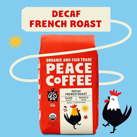 Peace Coffee Decaf French Roast | 20 oz Whole Bean Dark Roast | Organic Fair Trade | Rich, Bold Flavor | Shade Grown, Fresh Roasted