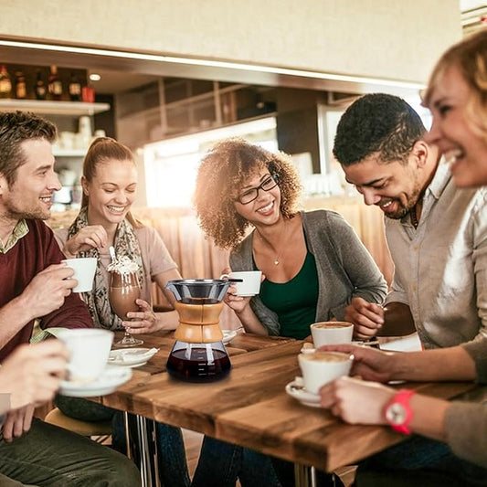 Pour Over Coffee Maker with Reusable Stainless Steel Drip Filter, Lead-Free Borosilicate Glass Coffee Carafe with Modern Wooden Collar for 1-4Cup, Circular Clear (600ml/20oz)