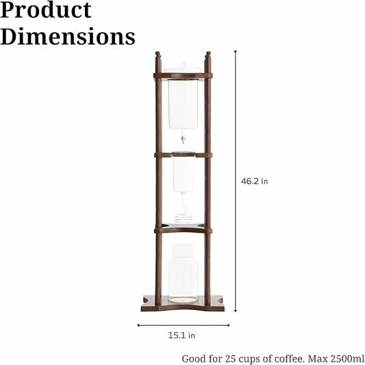 Nispira Cold Brew Drip Tower Iced Coffee Maker Glass Wooden Stand 25 Cups