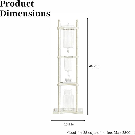 Nispira Cold Brew Drip Tower Iced Coffee Maker Glass Wooden Stand 25 Cups white