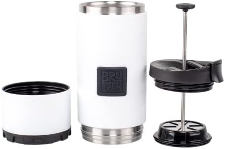 OVRLNDR Travel Coffee French Press, 24 fl.oz Capacity, Double Wall Vacuum Insulated, Easy To Clean Removable Bottom, No Spill Lid, On The Go Coffee Brewing (Snowflake White)