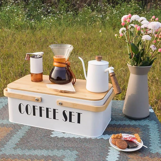 Pour Over Coffee Maker Set Coffee Kettle Scale Server Dripping Cup Bean Grinder Filter Paper Ceramic Cup ALL in 1 Great Portable Metal Box for Traveling Excellent Coffee Gift