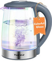 - [High Quality & Healthier] This electric kettle is made from colorful borosilicate glass and 304 stainless steel. Borosilicate glass has a very low coefficient of thermal expansion, allowing it to withstand thermal shocks. The colorful glass design is not only aesthetically pleasing but also adds a unique charm to your kitchen. It is BPA-free and features a 100% stainless steel lid and bottom to ensure your safety and health.