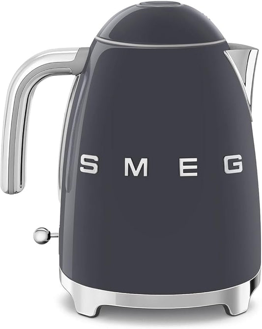 SMEG KLF03 7 Cup Electric Water Kettle, Retro-Style, Soft-Opening Lid, Auto Shut-Off, 360° Swivel Base – Grey
