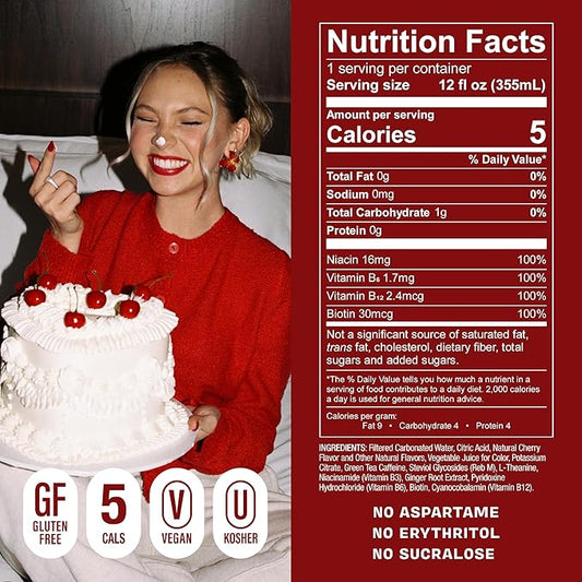 GORGIE Jordyn Jones Cherry Lime, Sugar-Free Natural Energy Drink Sparkling, Healthy Energy Drinks - Green Tea, Biotin, B Vitamins -150mg Caffeine, Vegan, & Low Calorie (Pack of 12)