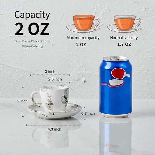 SIDUCAL Espresso Cups Set of 6,2 Ounce Ceramic Coffee Cups with Saucers,Porcelain Double Espresso Shot Cup Set,Gift Box for Boyfriend Gift(White)