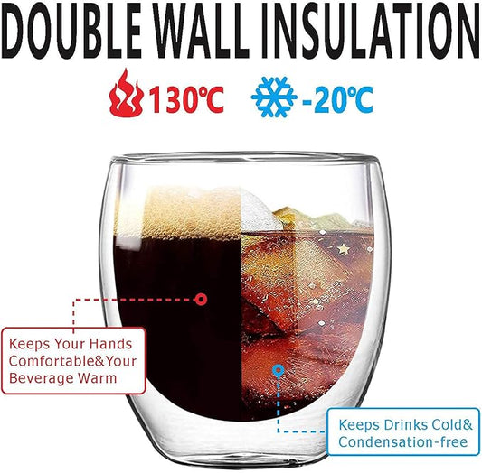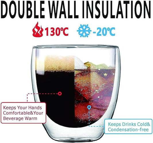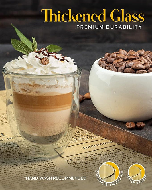 Kitchables Double Walled Glass Coffee Mugs Set of 4, 6oz Insulated Glass Coffee Mugs for Cappuccino, Latte, Tea, Espresso - Demitasse Latte Cup - Tazas Para Cafe