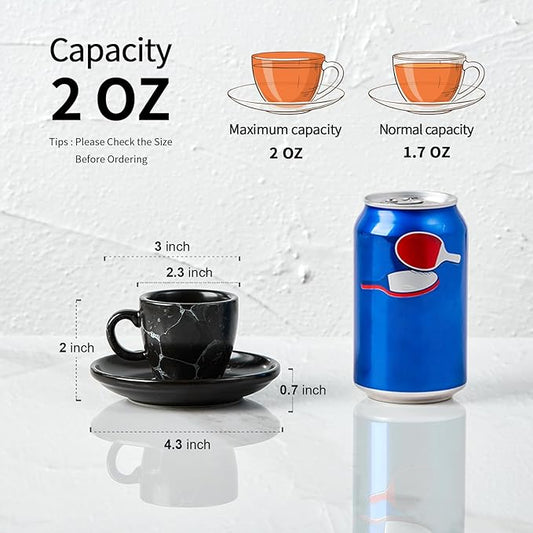 SIDUCAL Espresso Cups Set of 6,2 Ounce Ceramic Coffee Cups with Saucers,Porcelain Double Espresso Shot Cup Set,Gift Box for Boyfriend Gift(Black)